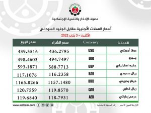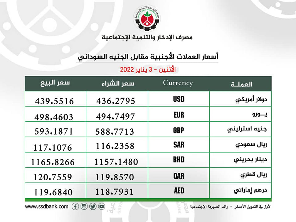 ⭕️ مصرف الإدخار والتنمية الإجتماعية – أسعار العملات ليوم الاثنين 3 يناير 2022م