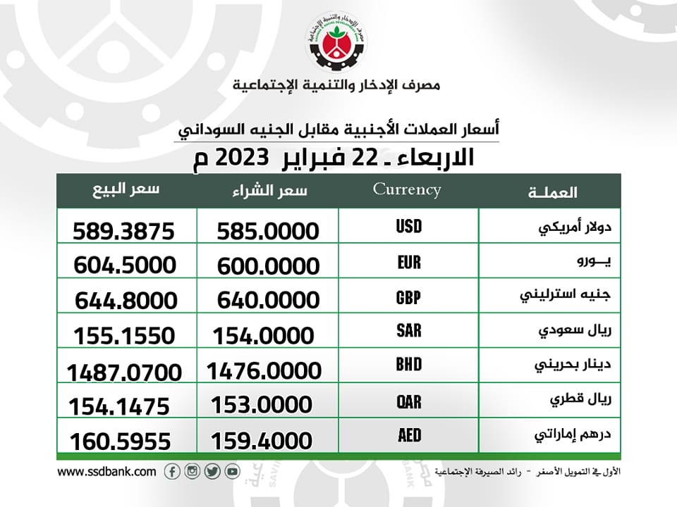 اسعار صرف العملات الاجنبية للاربعاء 22 فبراير 2023 م