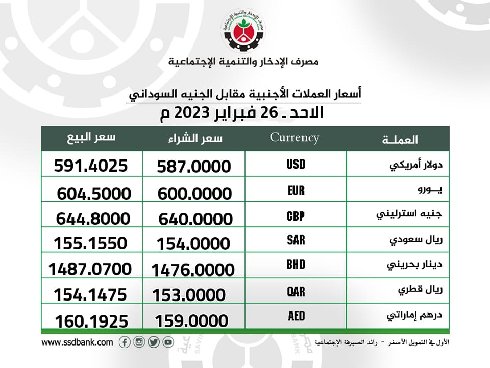 اسعار صرف العملات الاجنبية للاحد 26 فبراير 2023 م