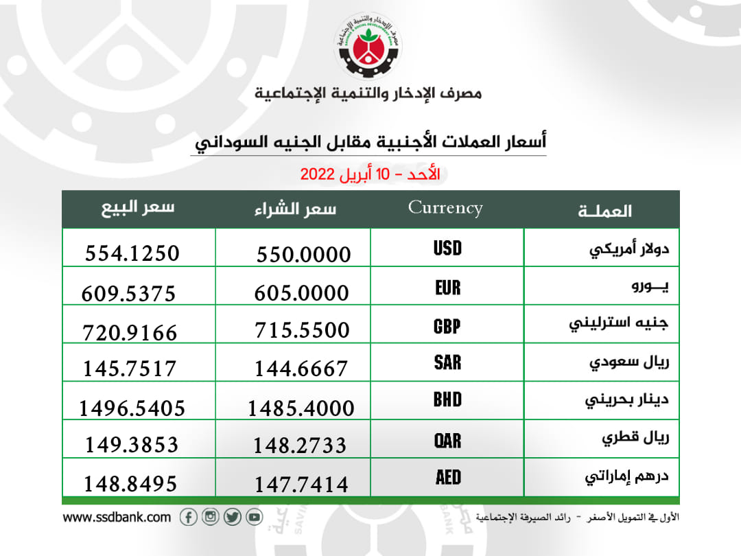 اسعار صرف العملات الاجنبية للاحد 10 ابريل 2022م