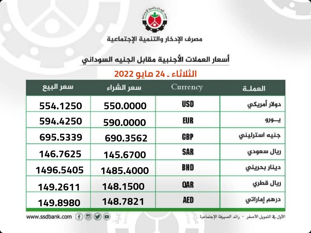 اسعار صرف العملات الاجنبية للثلاثاء 24 مايو 2022م