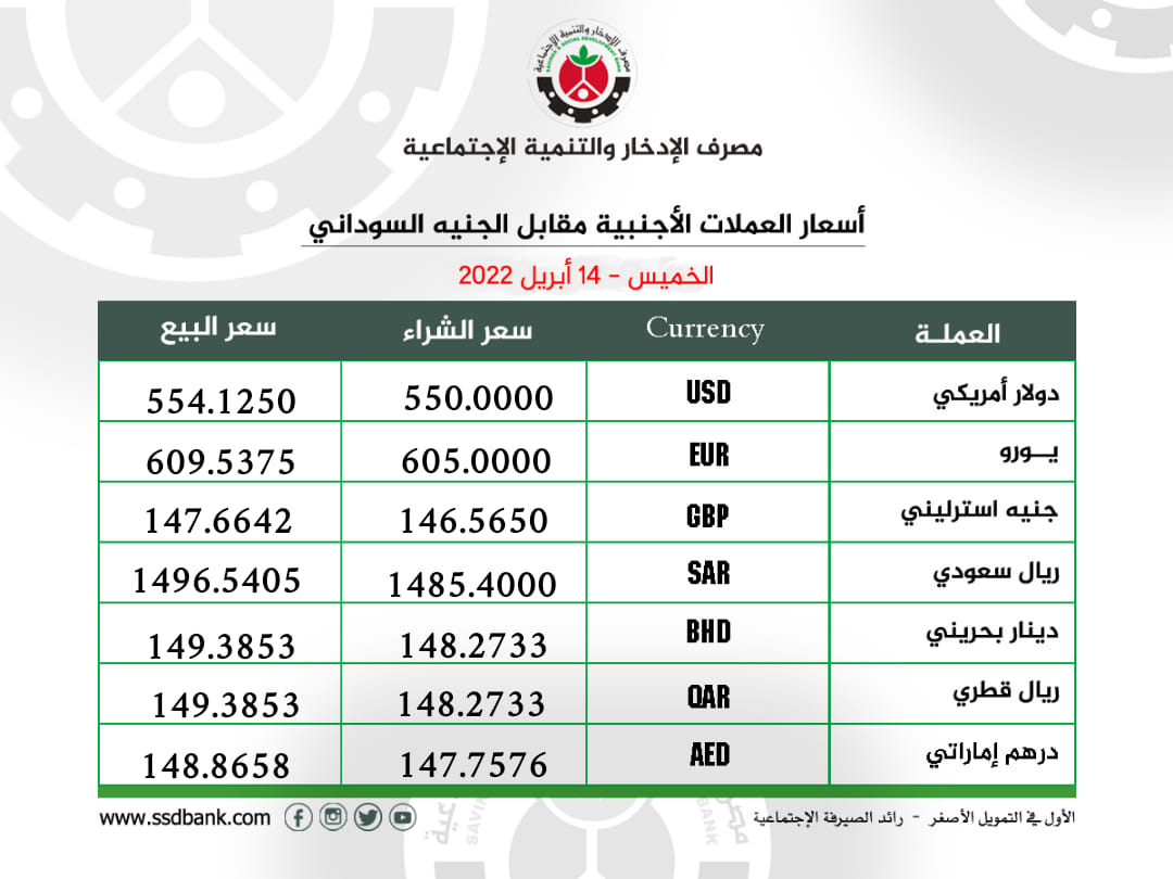 اسعار صرف العملات الاجنبية للخميس 14 ابريل 2022م