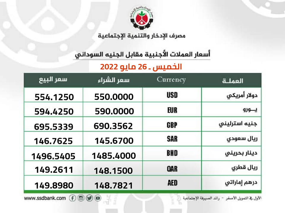 اسعار صرف العملات الاجنبية للخميس 26 مايو 2022م