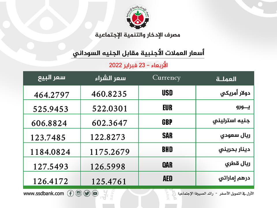 اسعار صرف العملات الاجنبية ليوم الاربعاء 23فبراير 2022م
