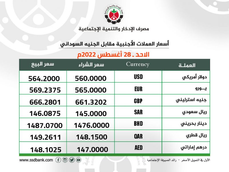 اسعار صرف العملات الاجنبية للاحد 28 اغسطس 2022م
