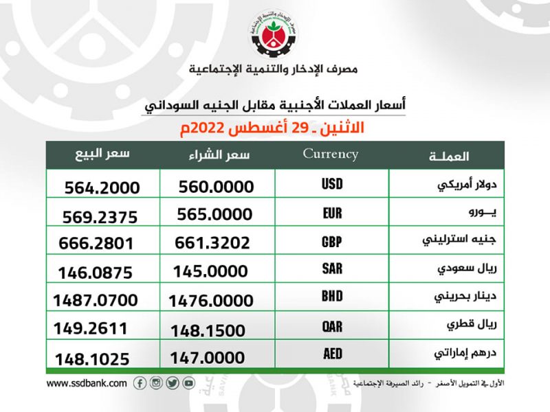 اسعار صرف العملات الاجنبية للاثنين 29 اغسطس 2022م
