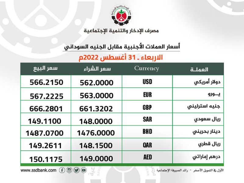 اسعار صرف العملات الاجنبية للاربعاء 31 أغسطس 2022م