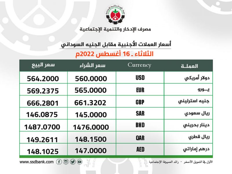 اسعار صرف العملات الاجنبية للثلاثاء 16 اغسطس 2022م