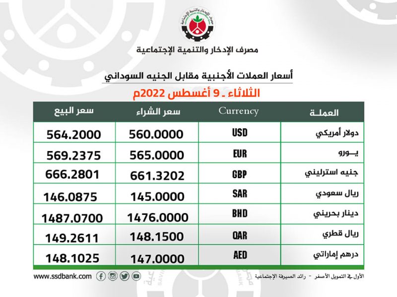 اسعار صرف العملات الاجنبية للثلاثاء 9 أغسطس 2022م
