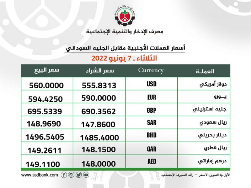 اسعار صرف العملات الاجنبية للثلاثاء 7 يونيو 2022م