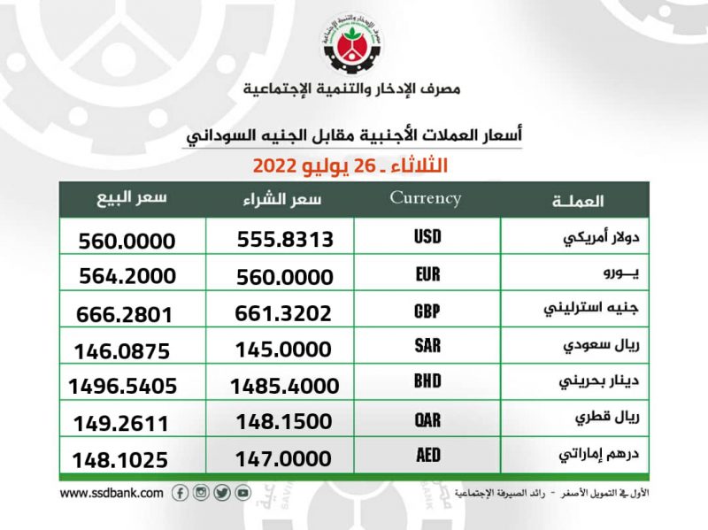 اسعار صرف العملات الاجنبية للثلاثاء 26 يوليو 2022م