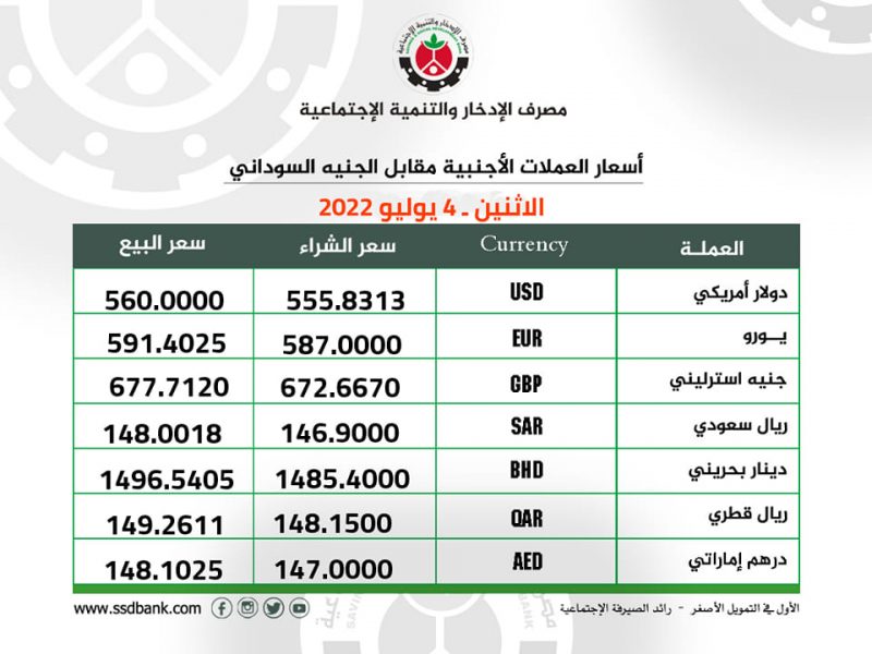 اسعار صرف العملات الاجنبية للاثنين 4 يوليو 2022م