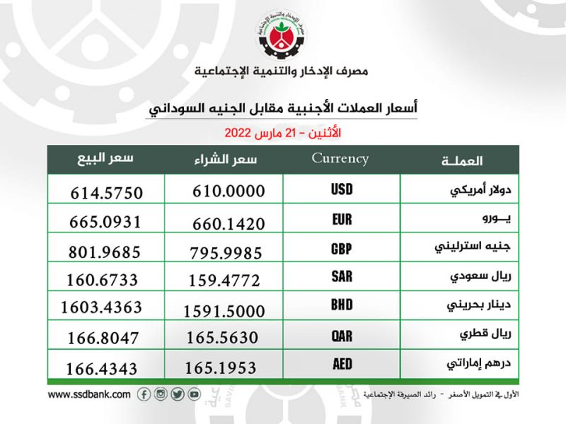 اسعار صرف العملات الاجنبية للاثنين 21 مارس 2022م