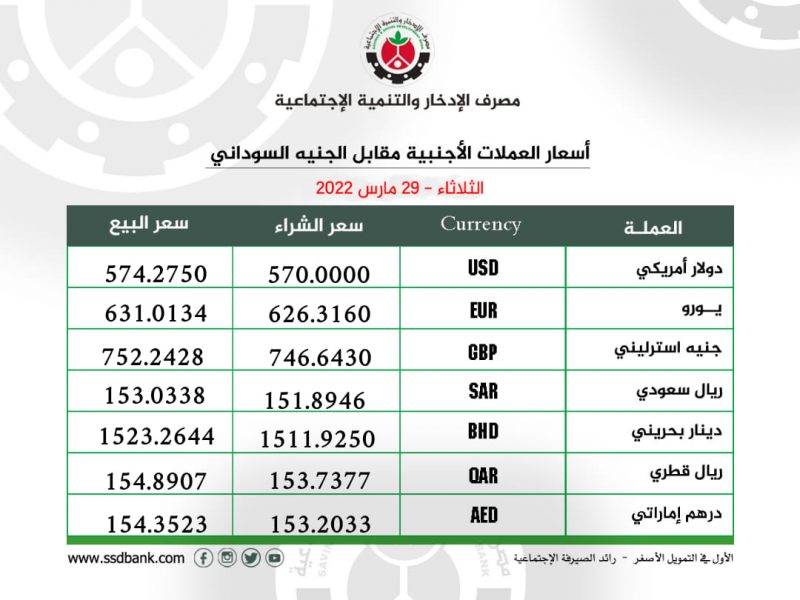 اسعار صرف العملات الاجنبية للثلاثاء 29 مارس 2022م