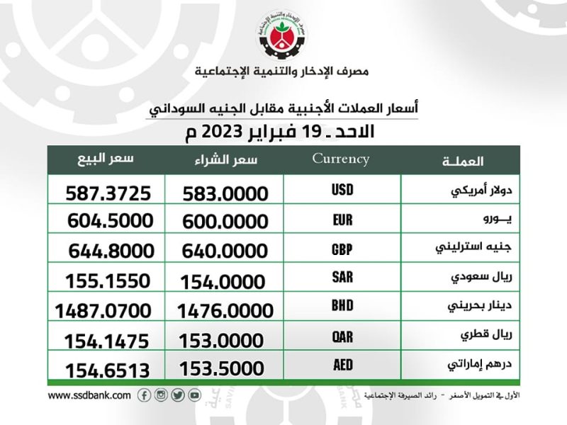 اسعار صرف العملات الاجنبية للاحد 19 فبراير 2023 م