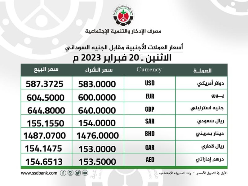 اسعار صرف العملات الاحنبية للاثنين 20 فبراير 2023م