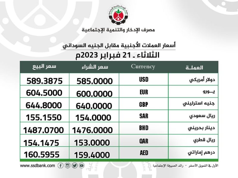 اسعار صرف العملات الاجنبية للثلاثاء 21 فبراير 2023 م