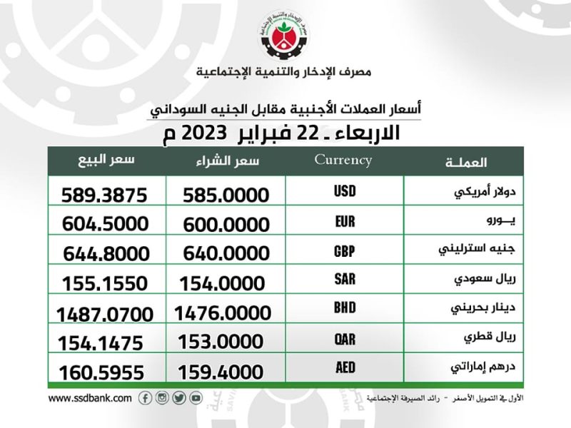 اسعار صرف العملات الاجنبية للاربعاء 22 فبراير 2023 م