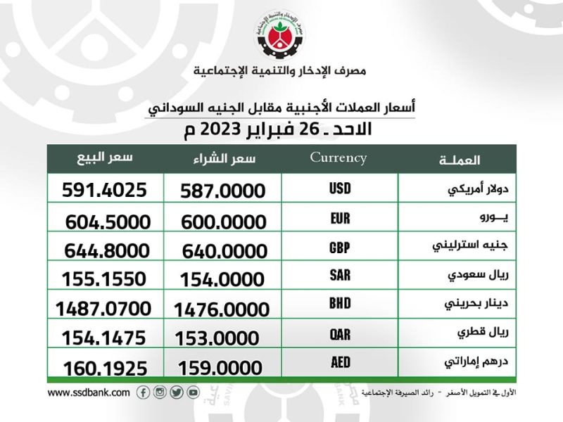 اسعار صرف العملات الاجنبية للاحد 26 فبراير 2023 م
