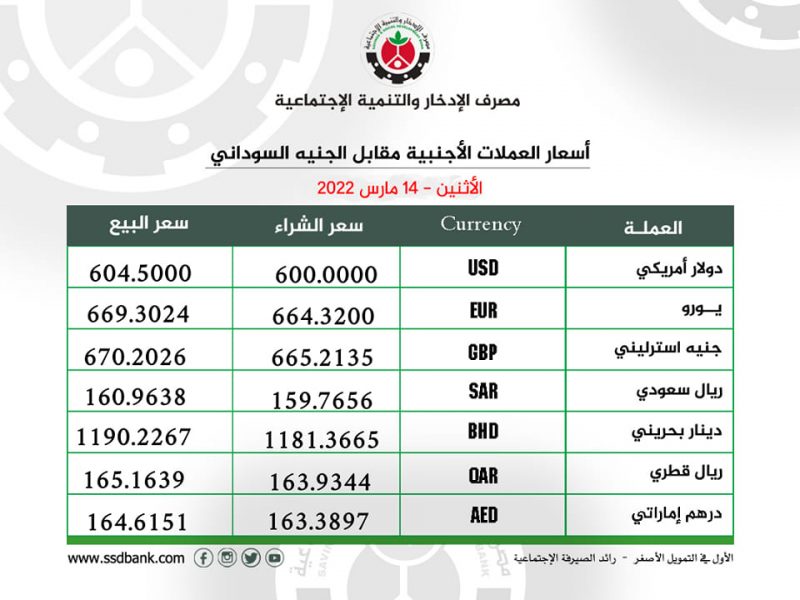 اسعار صرف العملات الاجنبية للاثنين 14 مارس 2022م