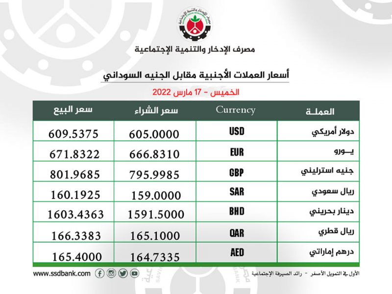 اسعار صرف العملات الاجنبية للخميس 17 مارس 2022م