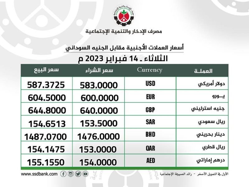 اسعار العملات الاجنبية للثلاثاء 14 فبراير 2023م