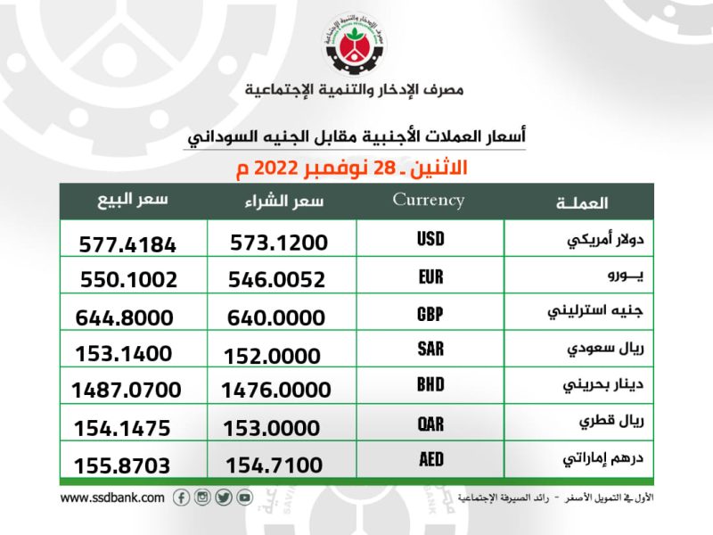 اسعار صرف العملات الاجنبية للاثنين 28 نوفمبر 2022م
