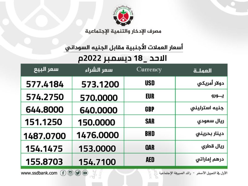 اسعار صرف العملات الاجنبية للاحد 18 ديسمبر 2022م