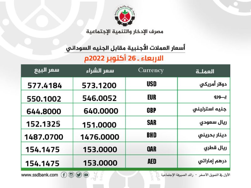 اسعار صرف العملات الاجنبية للاربعاء 26 اكتوبر 2022م