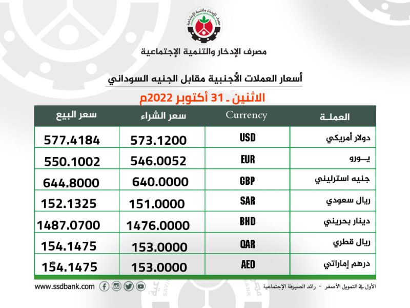 اسعار صرف العملات الاجنبية للاثنين 31 اكتوبر 2022م