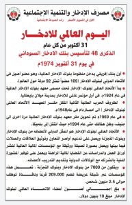يوم الادخار العالمي في مثل هذا اليوم تم تأسيس بنك الادخار السوداني 31/10 /1974 باعتباره اول بنك افريقي يدخل منظومة